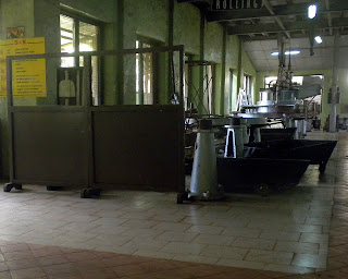 to the room below. Here the leaves are rolled (twisted to bring the juices to the surface) and passed through another machine which separates the rolled from the not-yet-rolled leaves. The not-yet-rolled are sent back to try again.